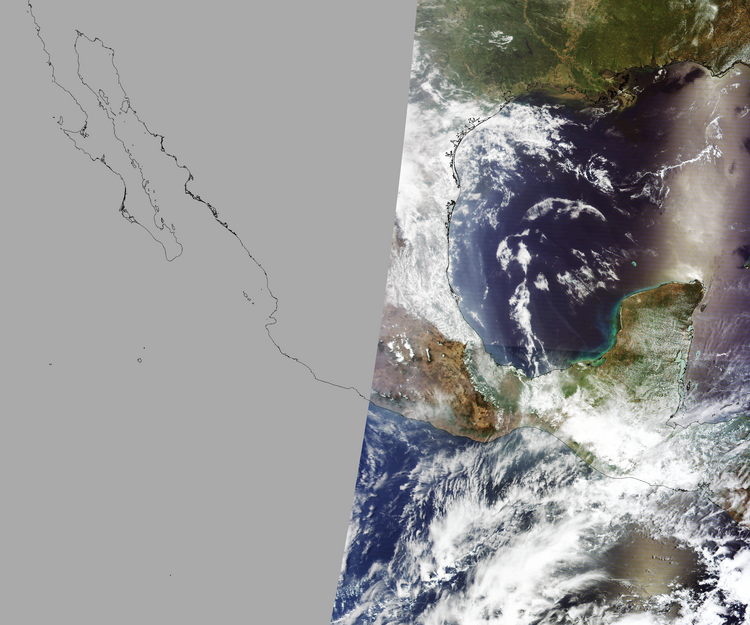 Nubosidad en el terreno:25% Nubosidad sobre México:26% Datos nulos en la escena:50% Datos nulos sobre México:63% |