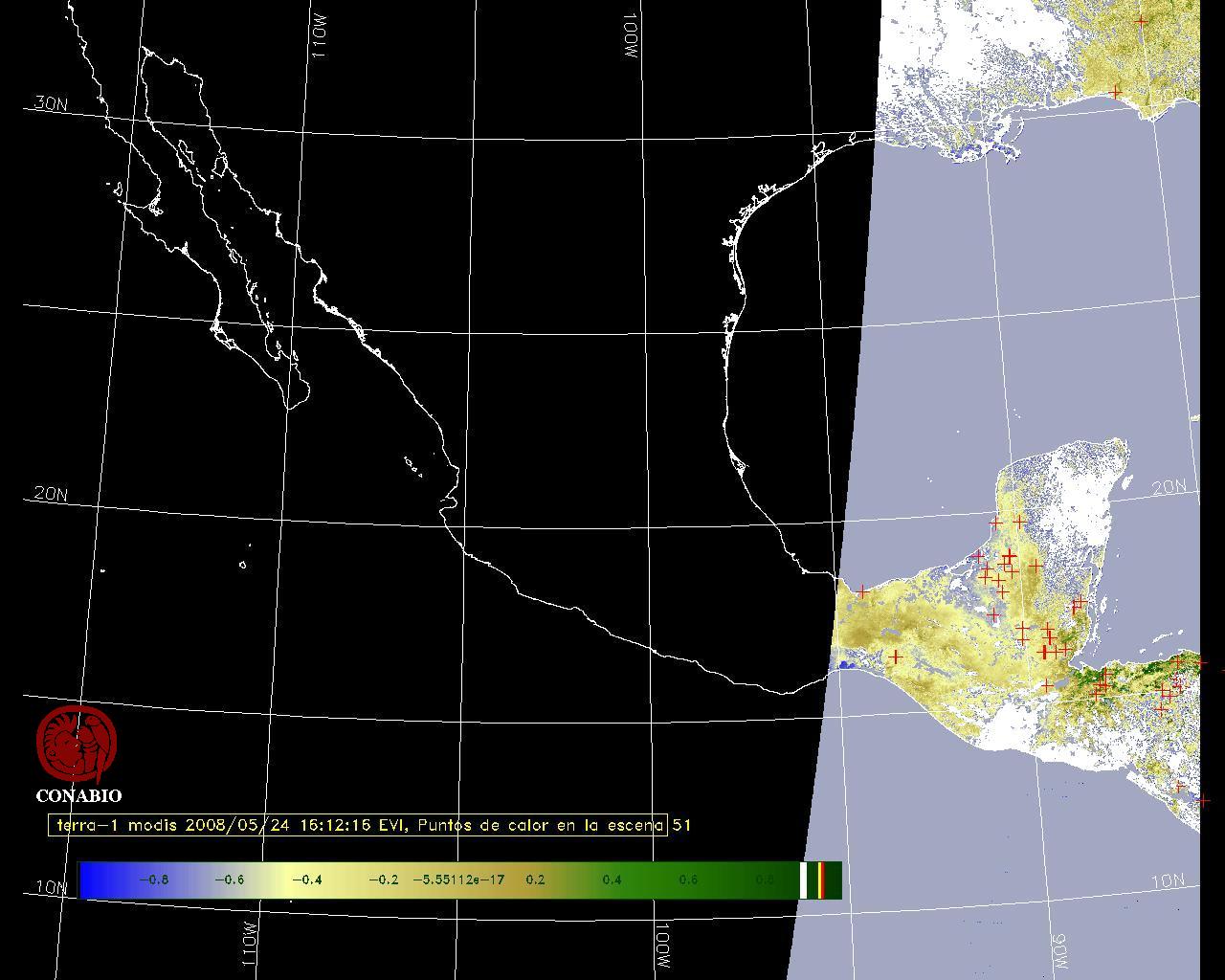 Se considera como punto de calor al elemento espacial mínimo de la imagen (pixel) que reporta una temperatura elevada. Para las imágenes diurnas la temperatura mínima considera es de 42 C y para las imágenes nocturnas es de 25 C. |