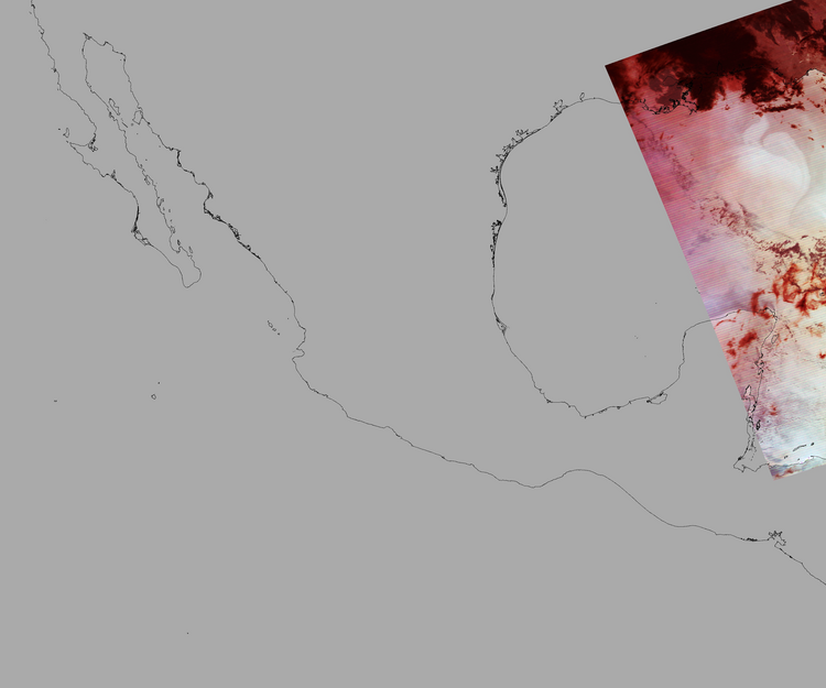 Nubosidad sobre el terreno:27% Nubosidad sobre México:0% Datos nulos en la escena:87% Datos nulos sobre México:97% |