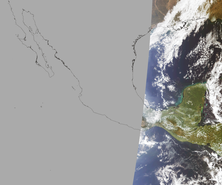 Nubosidad en el terreno:20% Nubosidad sobre México:6% Datos nulos en la escena:64% Datos nulos sobre México:83% |
