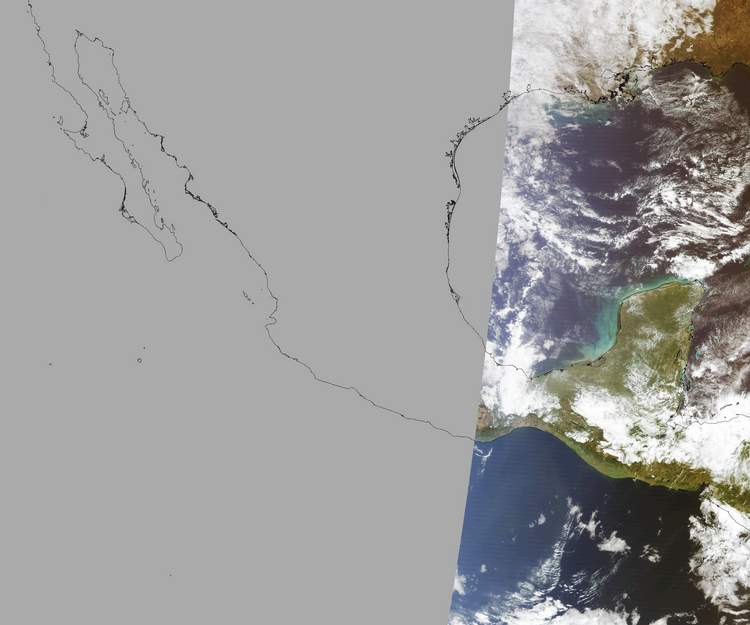 Nubosidad en el terreno:44% Nubosidad sobre México:25% Datos nulos en la escena:64% Datos nulos sobre México:83% |