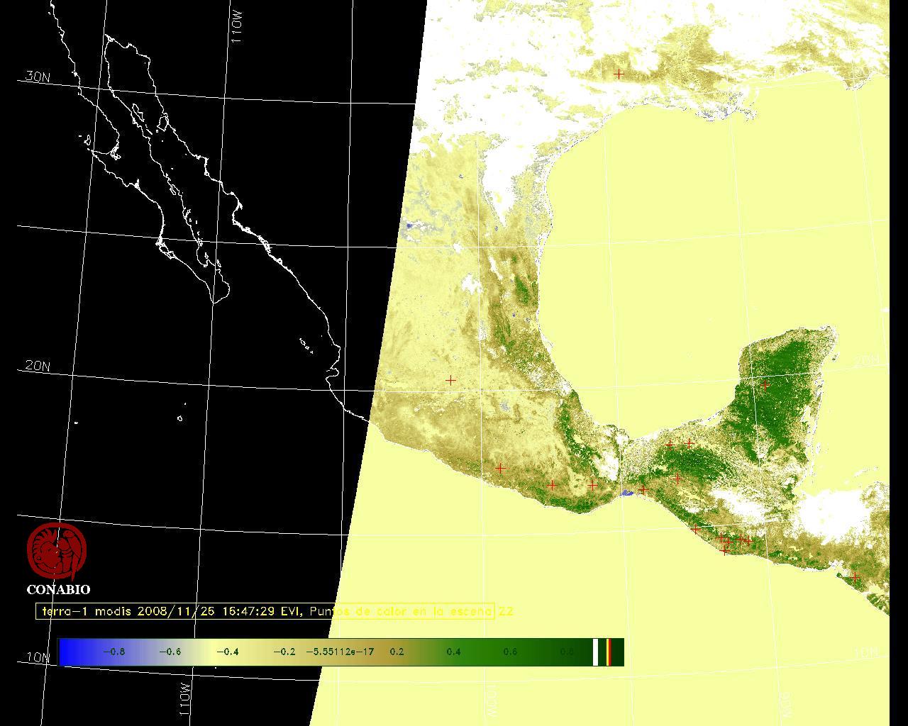 Se considera como punto de calor al elemento espacial mínimo de la imagen (pixel) que reporta una temperatura elevada. Para las imágenes diurnas la temperatura mínima considera es de 42 C y para las imágenes nocturnas es de 25 C. |