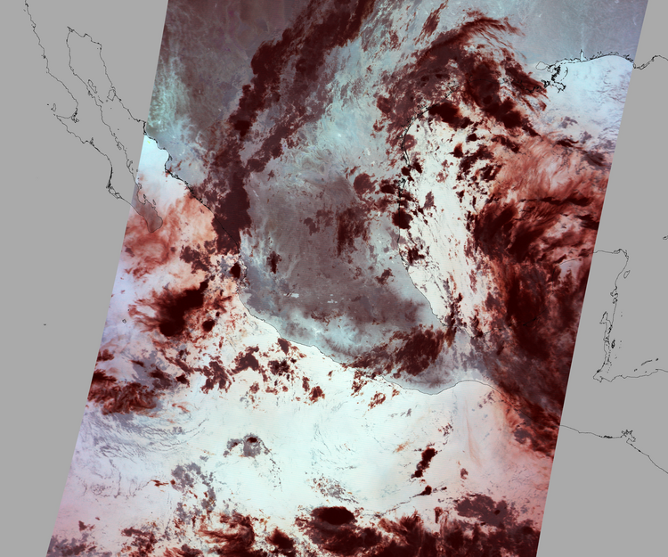 Nubosidad sobre el terreno:18% Nubosidad sobre México:15% Datos nulos en la escena:28% Datos nulos sobre México:15% |