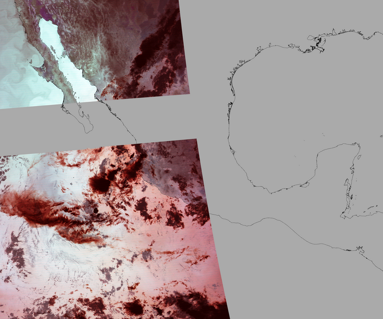 Nubosidad sobre el terreno:9% Nubosidad sobre México:6% Datos nulos en la escena:47% Datos nulos sobre México:37% |