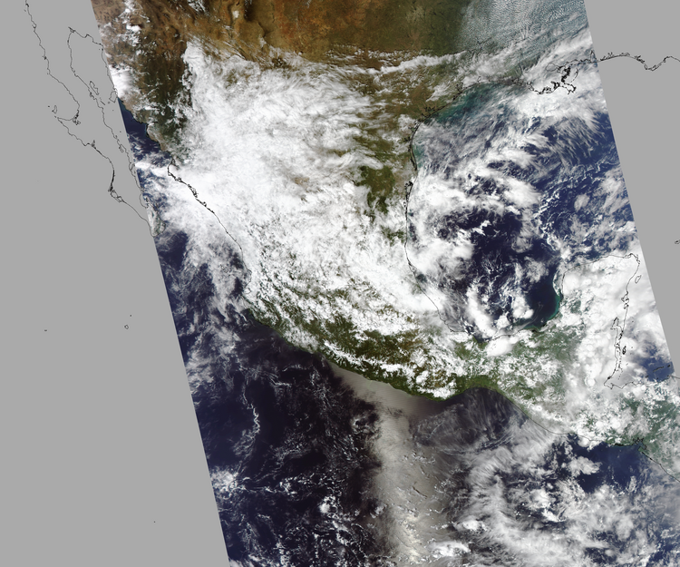 Nubosidad en el terreno:56% Nubosidad sobre México:69% Datos nulos en la escena:29% Datos nulos sobre México:7% |