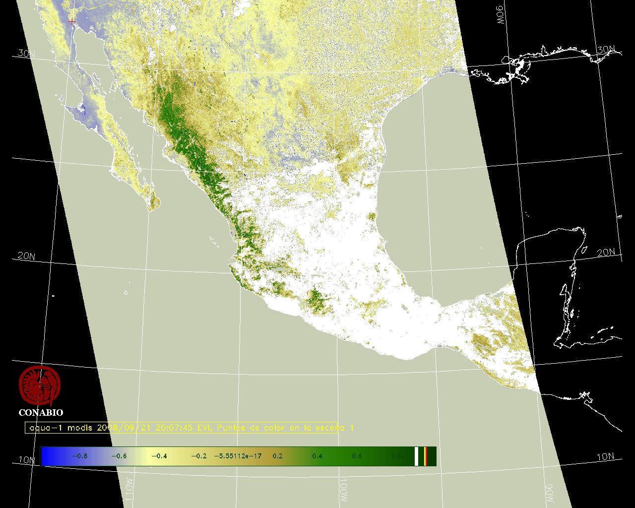 Se considera como punto de calor al elemento espacial mínimo de la imagen (pixel) que reporta una temperatura elevada. Para las imágenes diurnas la temperatura mínima considera es de 42 C y para las imágenes nocturnas es de 25 C. |