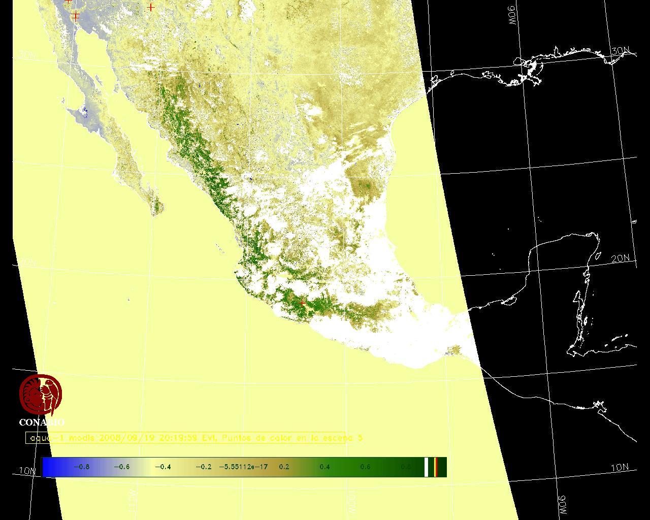 Se considera como punto de calor al elemento espacial mínimo de la imagen (pixel) que reporta una temperatura elevada. Para las imágenes diurnas la temperatura mínima considera es de 42 C y para las imágenes nocturnas es de 25 C. |
