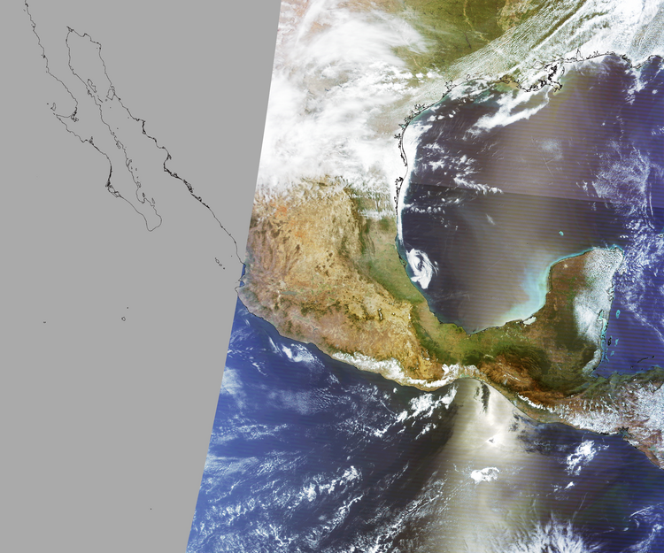 Nubosidad en el terreno:25% Nubosidad sobre México:18% Datos nulos en la escena:35% Datos nulos sobre México:34% |