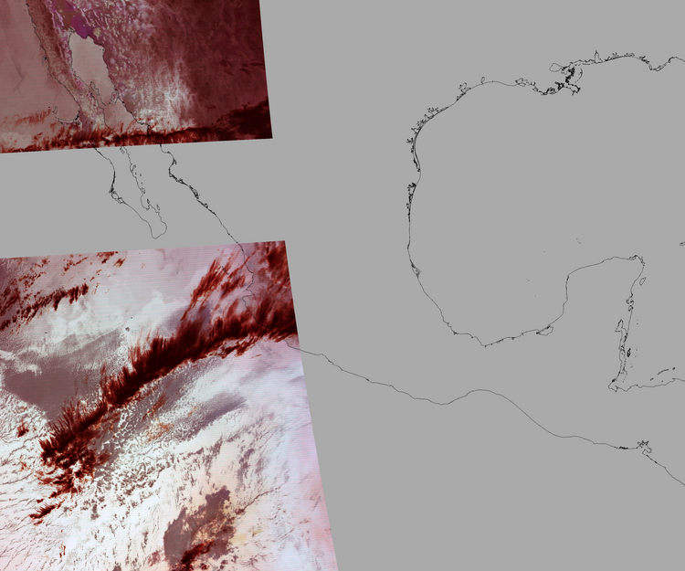 Nubosidad sobre el terreno:7% Nubosidad sobre México:9% Datos nulos en la escena:57% Datos nulos sobre México:59% |