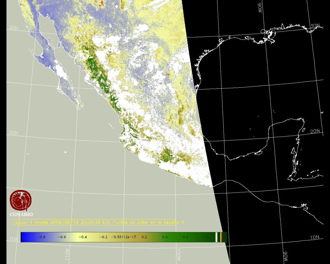 Se considera como punto de calor al elemento espacial mínimo de la imagen (pixel) que reporta una temperatura elevada. Para las imágenes diurnas la temperatura mínima considera es de 42 C y para las imágenes nocturnas es de 25 C. |