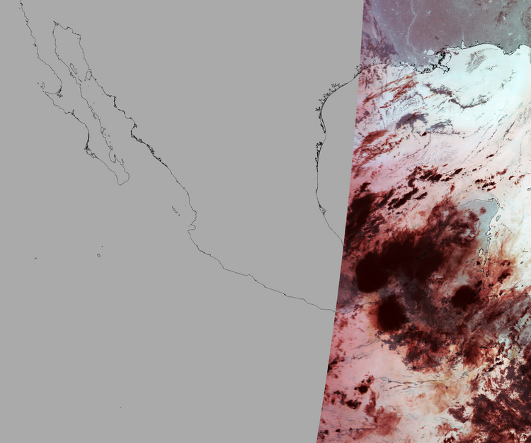 Nubosidad sobre el terreno:26% Nubosidad sobre México:47% Datos nulos en la escena:64% Datos nulos sobre México:83% |