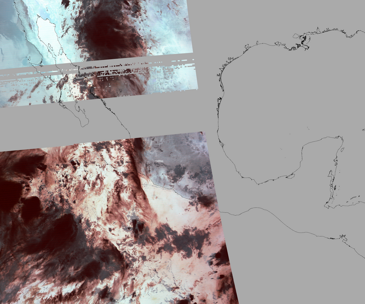 Nubosidad sobre el terreno:17% Nubosidad sobre México:15% Datos nulos en la escena:42% Datos nulos sobre México:26% |