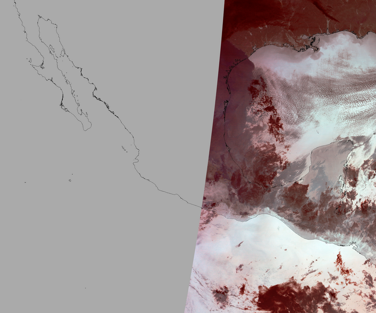 Nubosidad sobre el terreno:9% Nubosidad sobre México:0% Datos nulos en la escena:55% Datos nulos sobre México:71% |