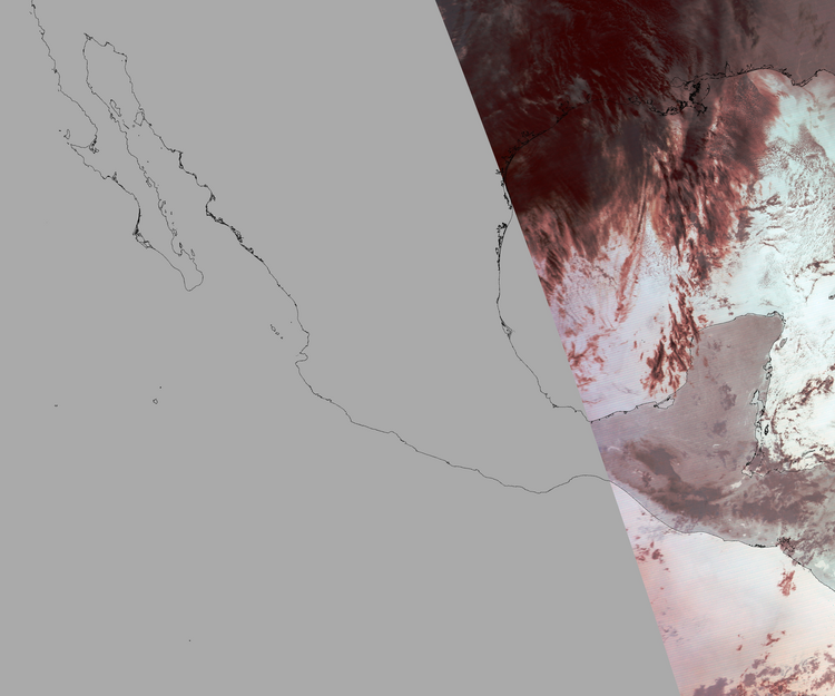 Nubosidad sobre el terreno:44% Nubosidad sobre México:0% Datos nulos en la escena:67% Datos nulos sobre México:87% |