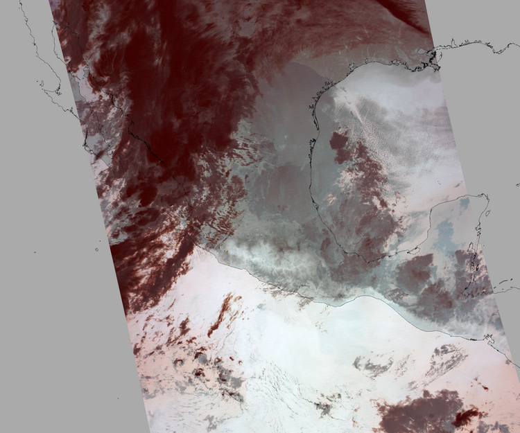 Nubosidad sobre el terreno:43% Nubosidad sobre México:39% Datos nulos en la escena:28% Datos nulos sobre México:5% |