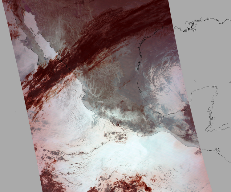 Nubosidad en el terreno:26% Nubosidad sobre México:16% Datos nulos en la escena:28% Datos nulos sobre México:6% |