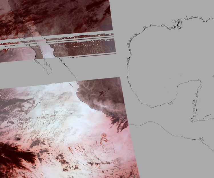Nubosidad sobre el terreno:13% Nubosidad sobre México:6% Datos nulos en la escena:42% Datos nulos sobre México:26% |