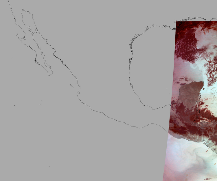 Nubosidad sobre el terreno:1% Nubosidad sobre México:0% Datos nulos en la escena:80% Datos nulos sobre México:91% |