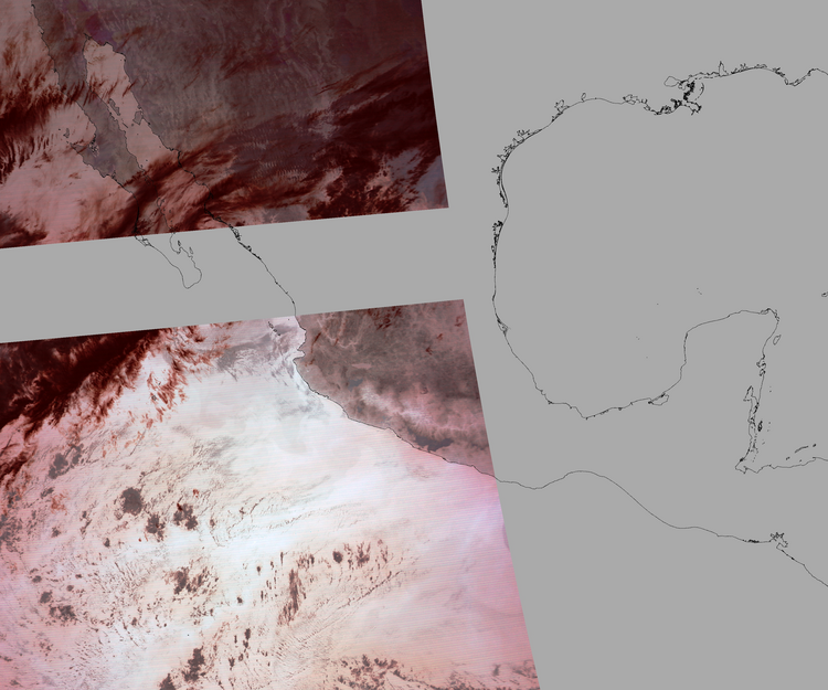 Nubosidad sobre el terreno:23% Nubosidad sobre México:19% Datos nulos en la escena:42% Datos nulos sobre México:26% |