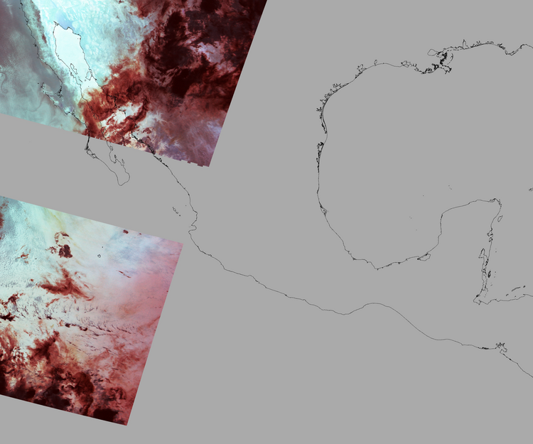 Nubosidad sobre el terreno:31% Nubosidad sobre México:25% Datos nulos en la escena:64% Datos nulos sobre México:62% |