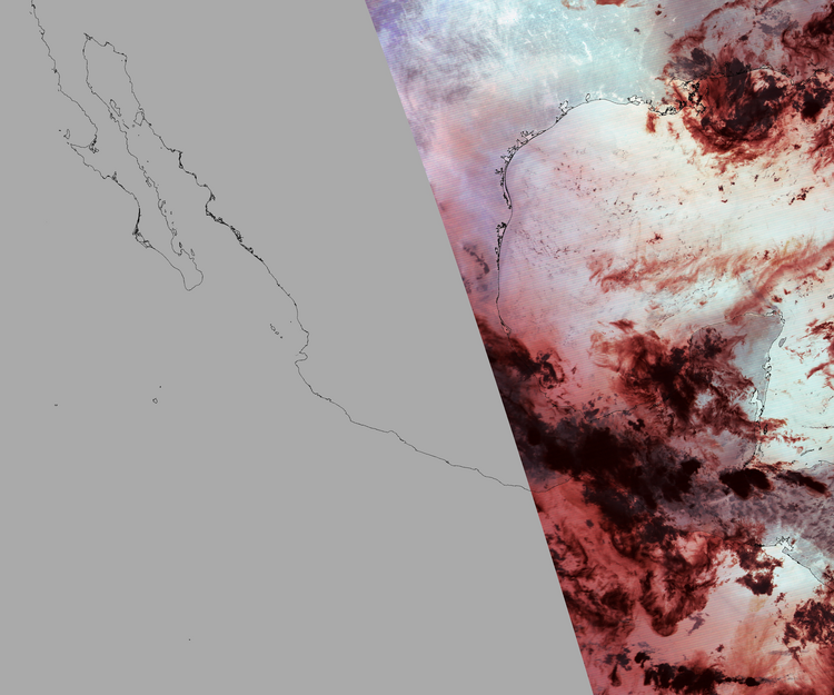 Nubosidad en el terreno:13% Nubosidad sobre México:33% Datos nulos en la escena:57% Datos nulos sobre México:74% |