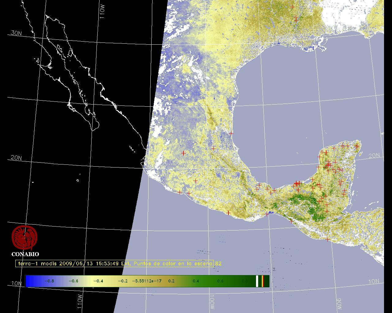 Se considera como punto de calor al elemento espacial mínimo de la imagen (pixel) que reporta una temperatura elevada. Para las imágenes diurnas la temperatura mínima considera es de 42 C y para las imágenes nocturnas es de 25 C. |