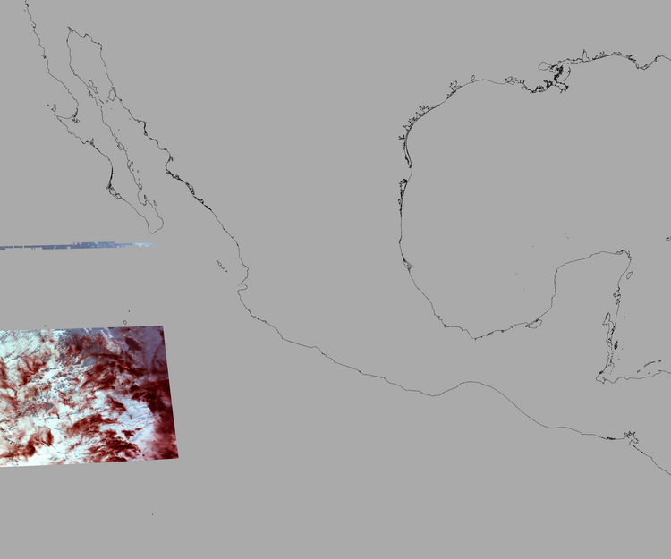Nubosidad sobre el terreno:0% Nubosidad sobre México:0% Datos nulos en la escena:82% Datos nulos sobre México:92% |