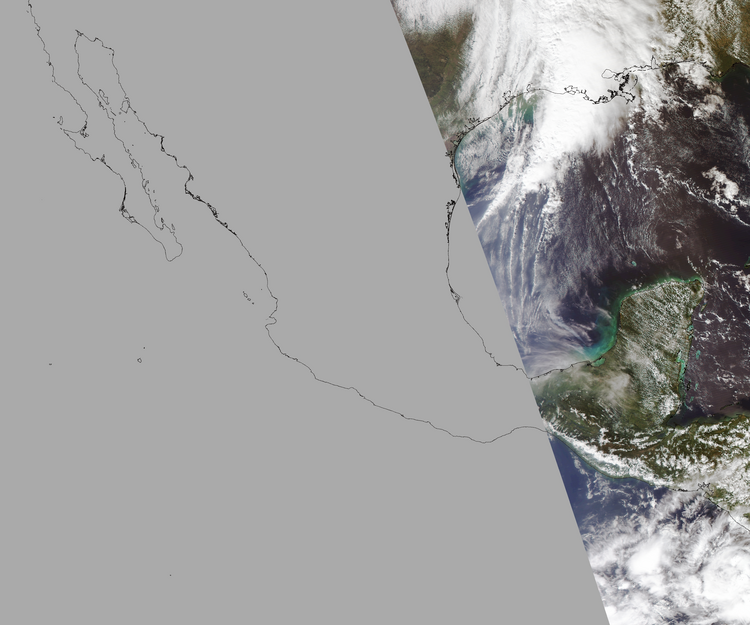 Nubosidad en el terreno:43% Nubosidad sobre México:9% Datos nulos en la escena:67% Datos nulos sobre México:87% |