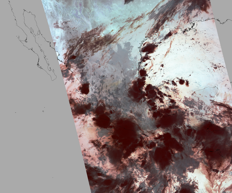 Nubosidad en el terreno:32% Nubosidad sobre México:35% Datos nulos en la escena:31% Datos nulos sobre México:11% |