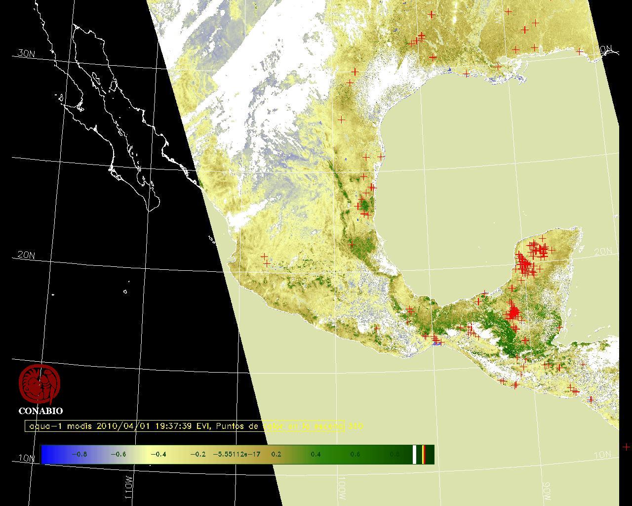 Se considera como punto de calor al elemento espacial mínimo de la imagen (pixel) que reporta una temperatura elevada. Para las imágenes diurnas la temperatura mínima considera es de 42 C y para las imágenes nocturnas es de 25 C. |