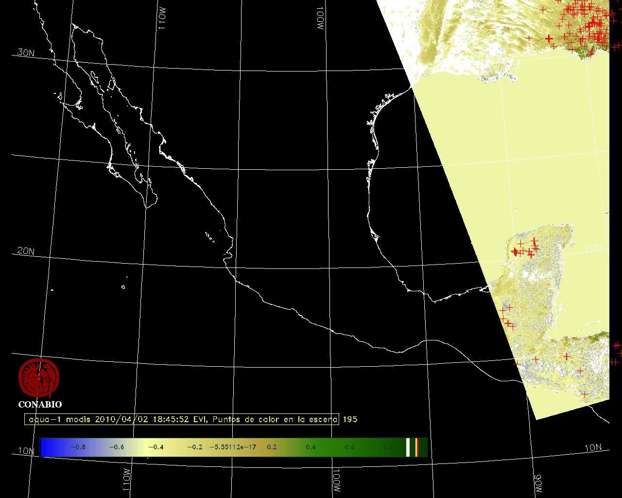 Se considera como punto de calor al elemento espacial mínimo de la imagen (pixel) que reporta una temperatura elevada. Para las imágenes diurnas la temperatura mínima considera es de 42 C y para las imágenes nocturnas es de 25 C. |