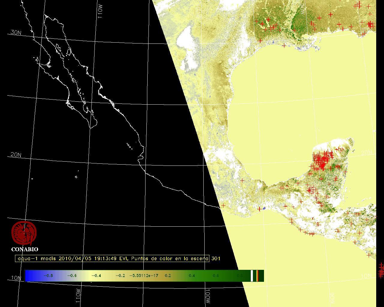 Se considera como punto de calor al elemento espacial mínimo de la imagen (pixel) que reporta una temperatura elevada. Para las imágenes diurnas la temperatura mínima considera es de 42 C y para las imágenes nocturnas es de 25 C. |