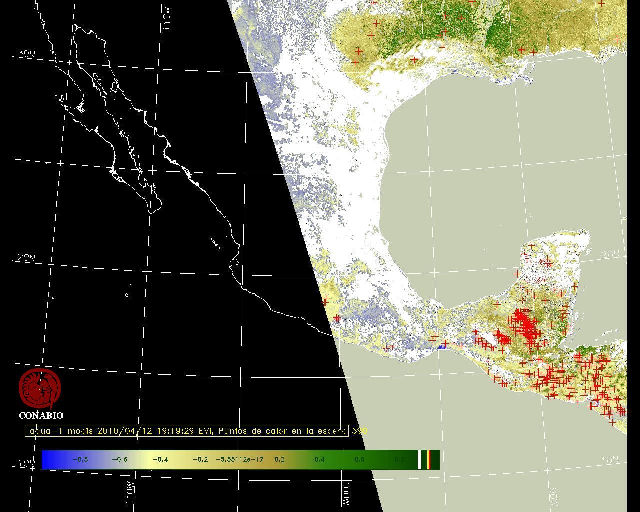 Se considera como punto de calor al elemento espacial mínimo de la imagen (pixel) que reporta una temperatura elevada. Para las imágenes diurnas la temperatura mínima considera es de 42 C y para las imágenes nocturnas es de 25 C. |