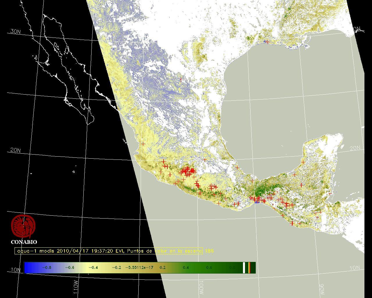 Se considera como punto de calor al elemento espacial mínimo de la imagen (pixel) que reporta una temperatura elevada. Para las imágenes diurnas la temperatura mínima considera es de 42 C y para las imágenes nocturnas es de 25 C. |