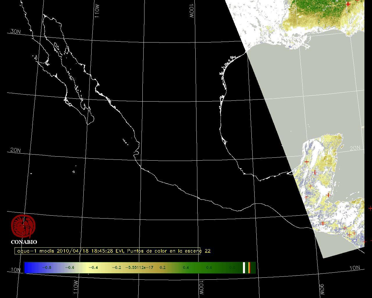 Se considera como punto de calor al elemento espacial mínimo de la imagen (pixel) que reporta una temperatura elevada. Para las imágenes diurnas la temperatura mínima considera es de 42 C y para las imágenes nocturnas es de 25 C. |
