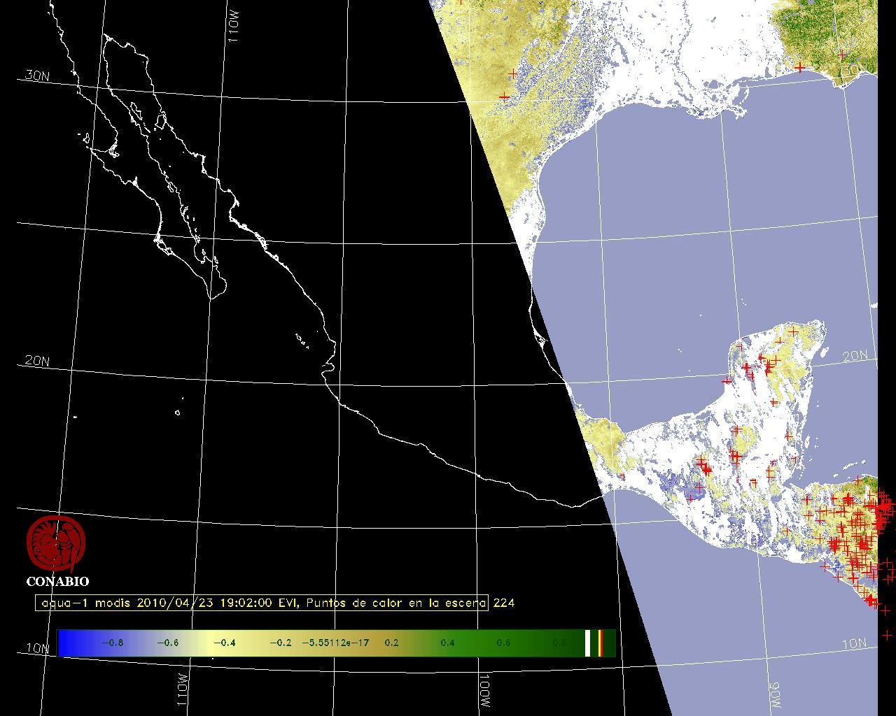 Se considera como punto de calor al elemento espacial mínimo de la imagen (pixel) que reporta una temperatura elevada. Para las imágenes diurnas la temperatura mínima considera es de 42 C y para las imágenes nocturnas es de 25 C. |