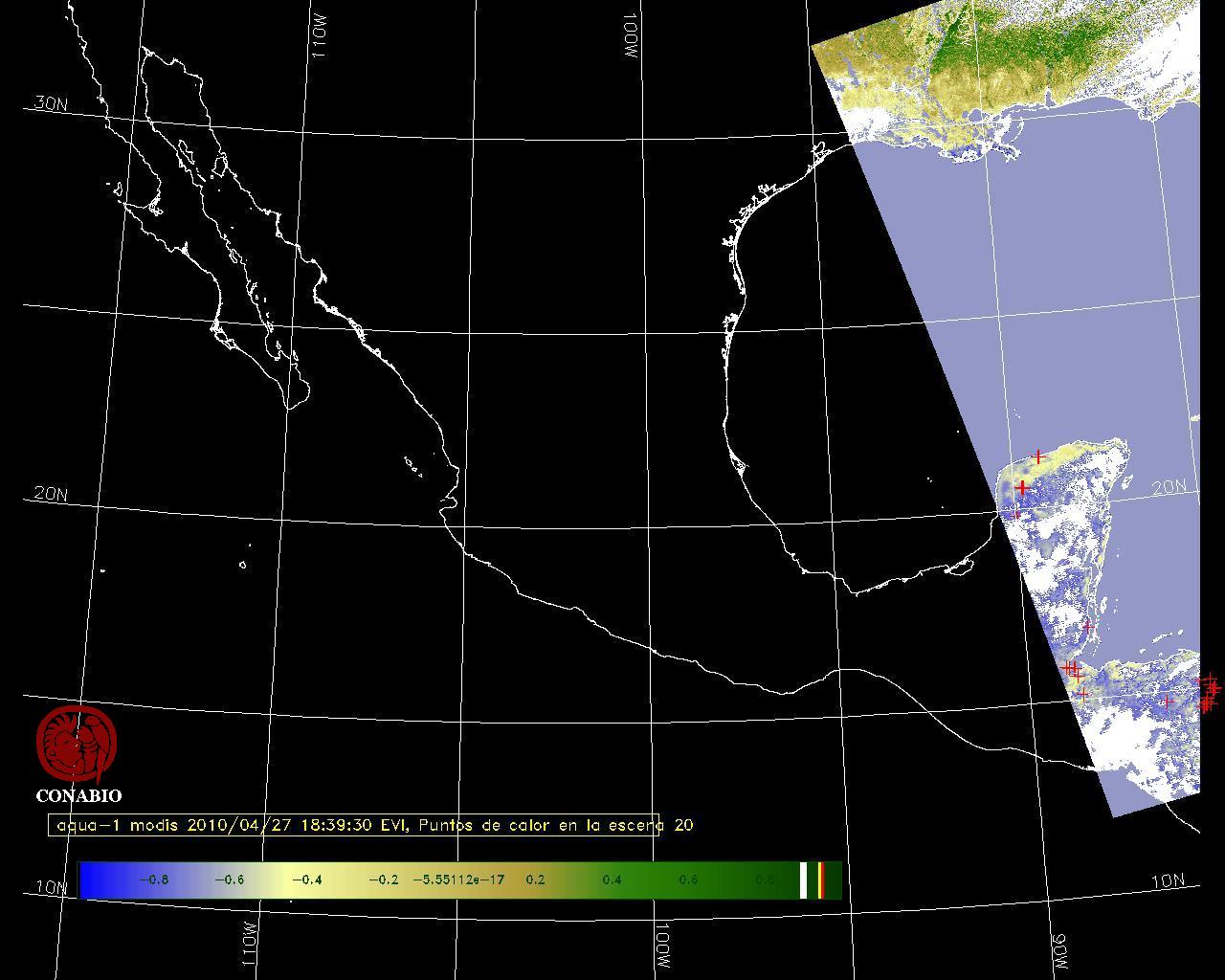 Se considera como punto de calor al elemento espacial mínimo de la imagen (pixel) que reporta una temperatura elevada. Para las imágenes diurnas la temperatura mínima considera es de 42 C y para las imágenes nocturnas es de 25 C. |