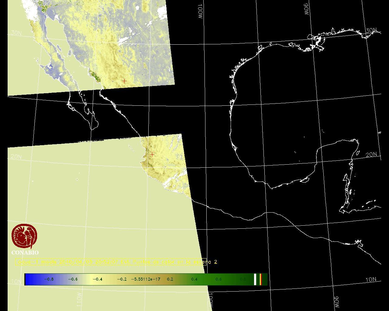 Los valores del índice van de -1 a 1, entre más cercano al valor 1 la vegetación presenta mayor vigor. Los índices de vegetación son utilizados para conocer el comportamiento de la vegetación tanto espacial como temporal. |