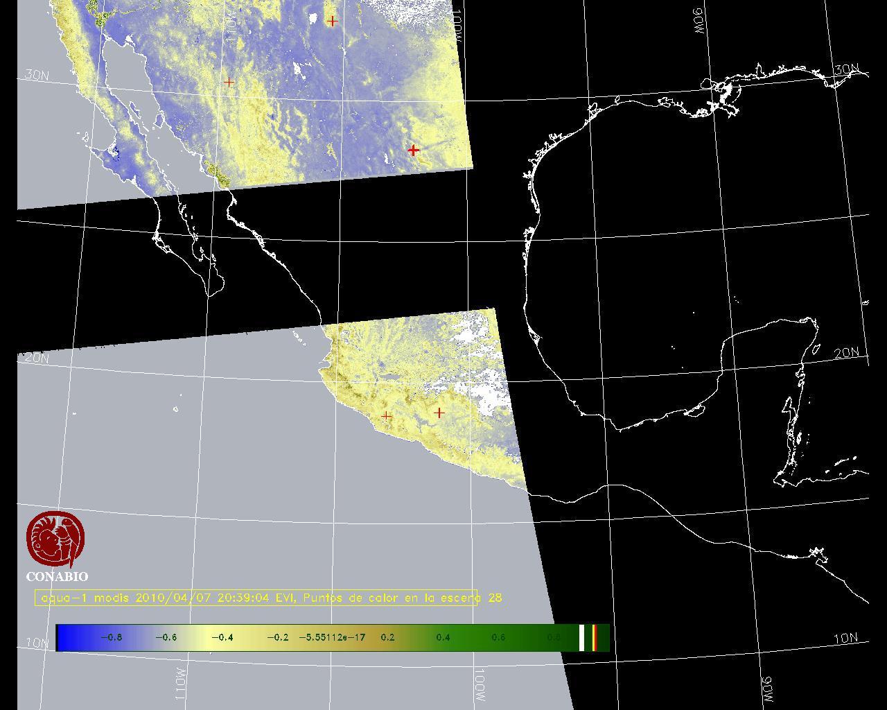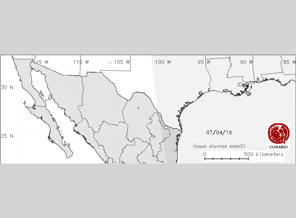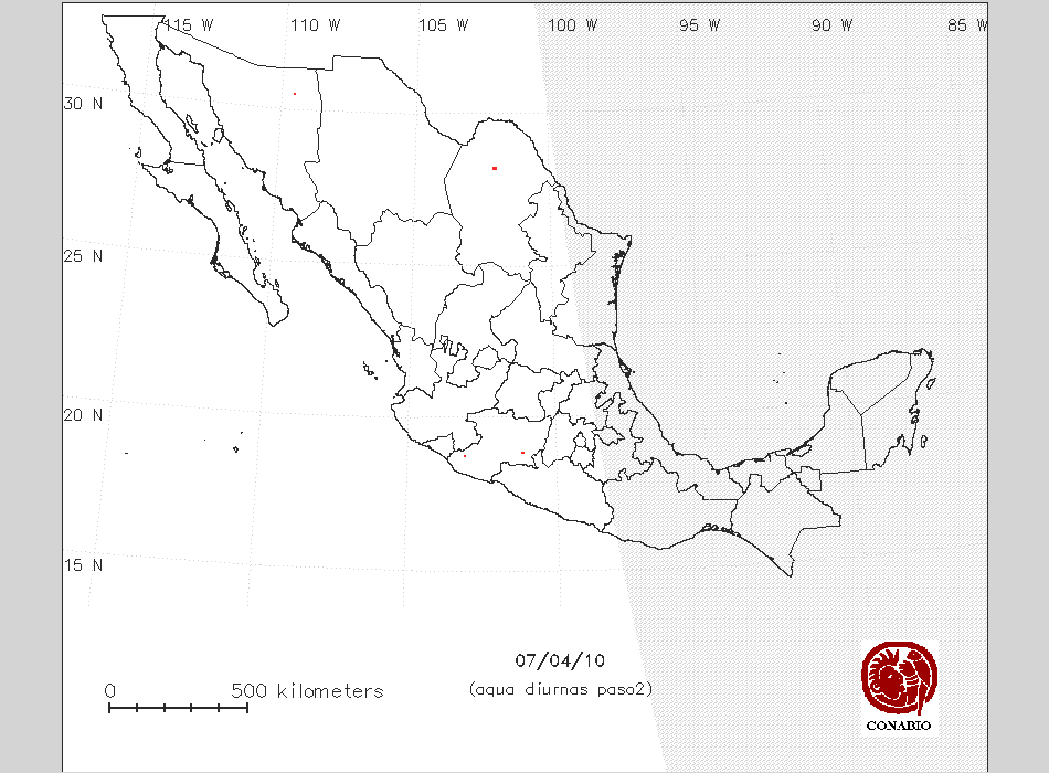 Se considera como punto de calor al elemento espacial mínimo de la imagen (pixel) que reporta una temperatura elevada. Para las imágenes diurnas la temperatura mínima considera es de 42 C y para las imágenes nocturnas es de 25 C. |