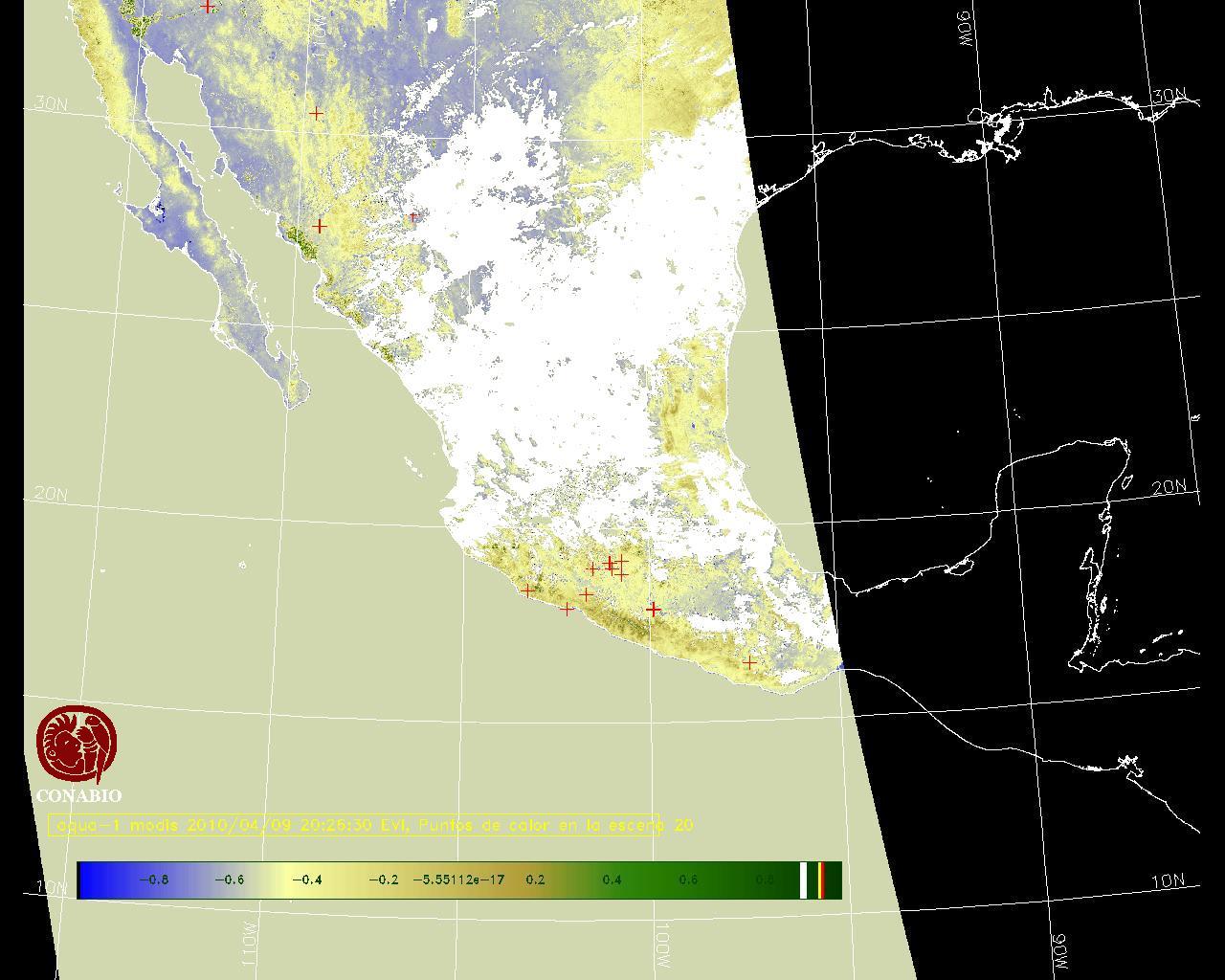 Se considera como punto de calor al elemento espacial mínimo de la imagen (pixel) que reporta una temperatura elevada. Para las imágenes diurnas la temperatura mínima considera es de 42 C y para las imágenes nocturnas es de 25 C. |