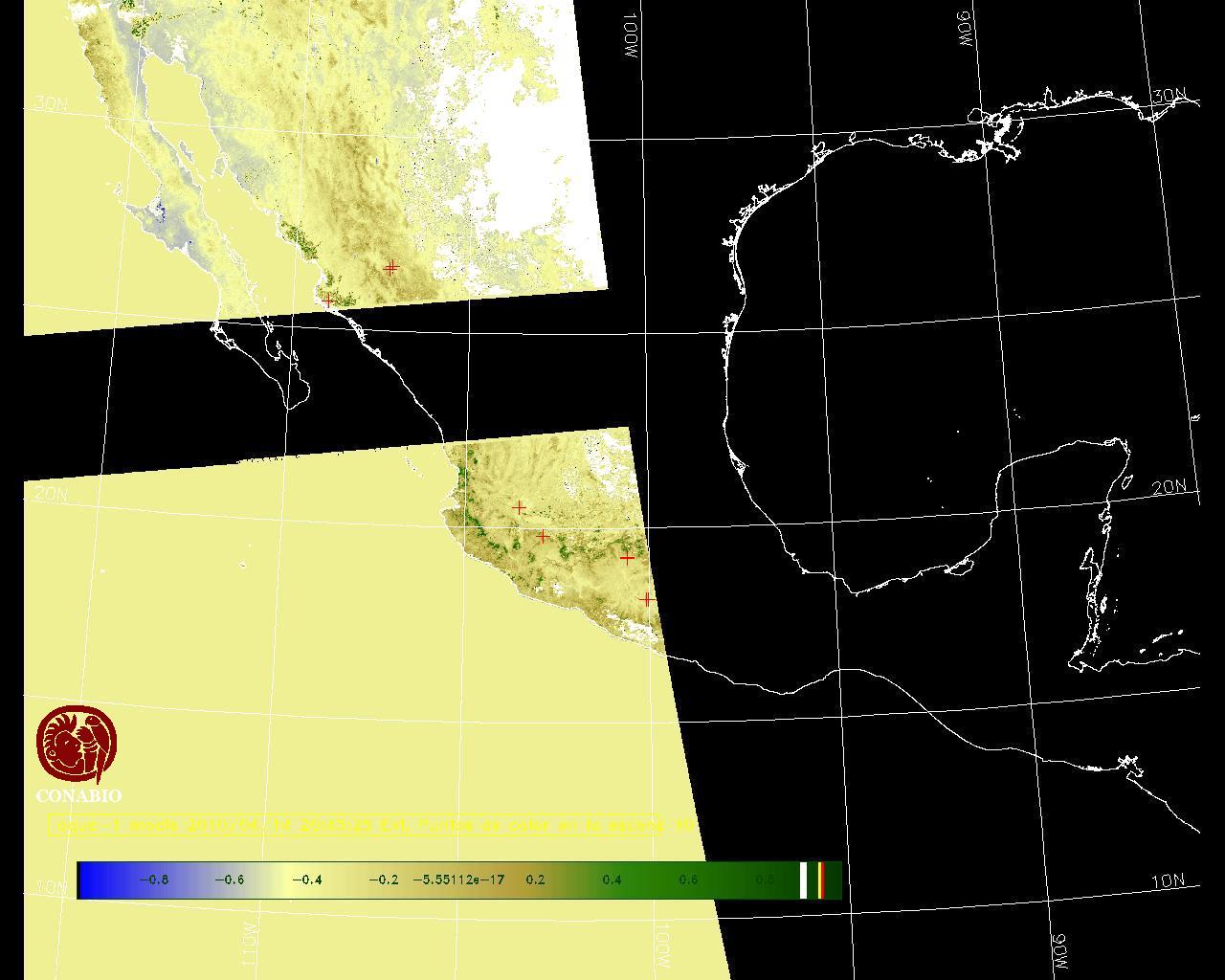 Los valores del índice van de -1 a 1, entre más cercano al valor 1 la vegetación presenta mayor vigor. Los índices de vegetación son utilizados para conocer el comportamiento de la vegetación tanto espacial como temporal. |