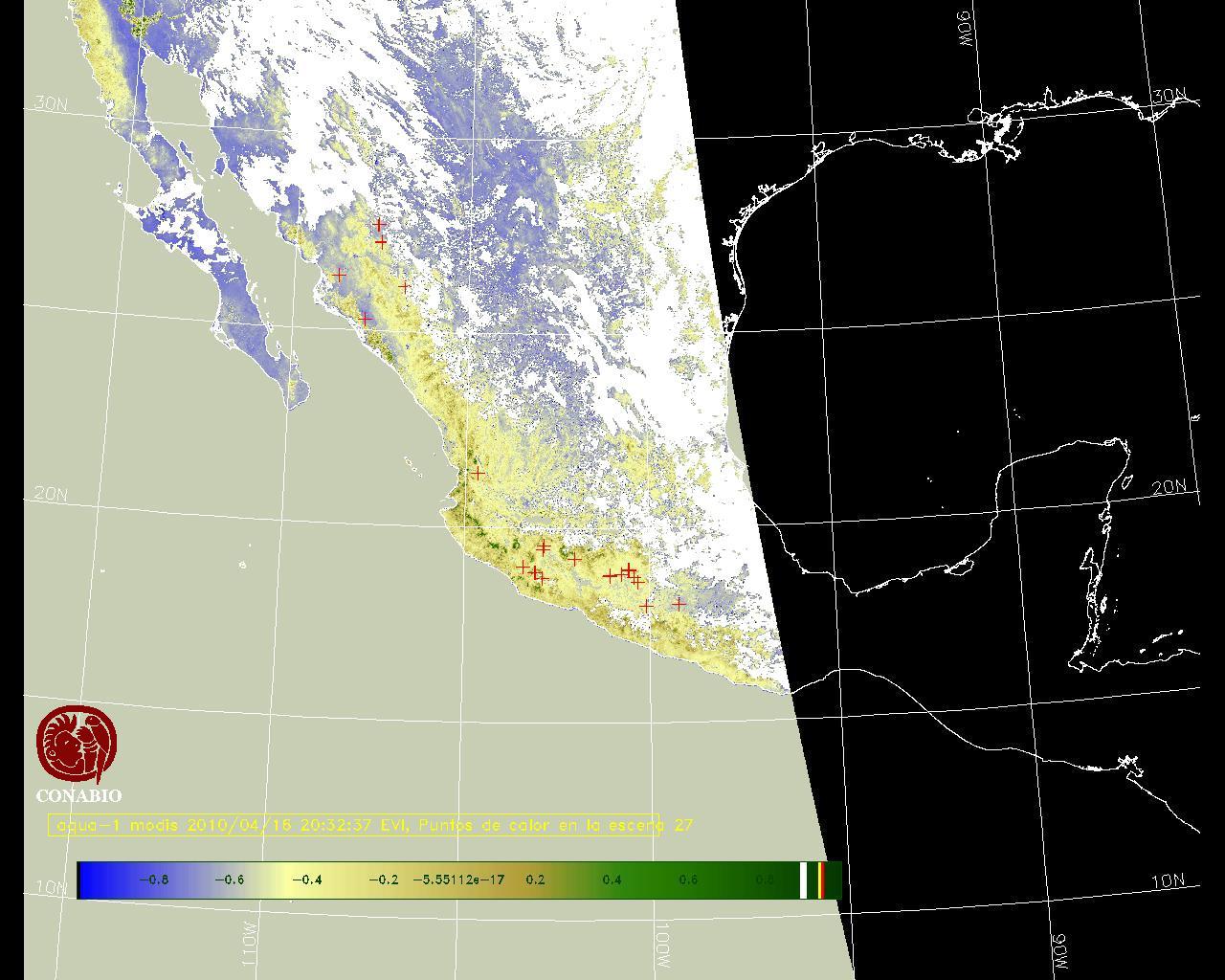 Se considera como punto de calor al elemento espacial mínimo de la imagen (pixel) que reporta una temperatura elevada. Para las imágenes diurnas la temperatura mínima considera es de 42 C y para las imágenes nocturnas es de 25 C. |