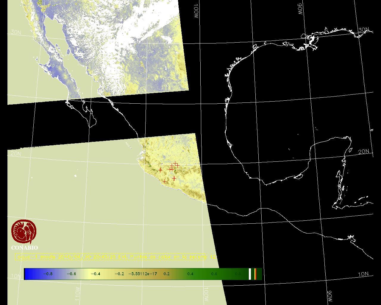 Los valores del índice van de -1 a 1, entre más cercano al valor 1 la vegetación presenta mayor vigor. Los índices de vegetación son utilizados para conocer el comportamiento de la vegetación tanto espacial como temporal. |