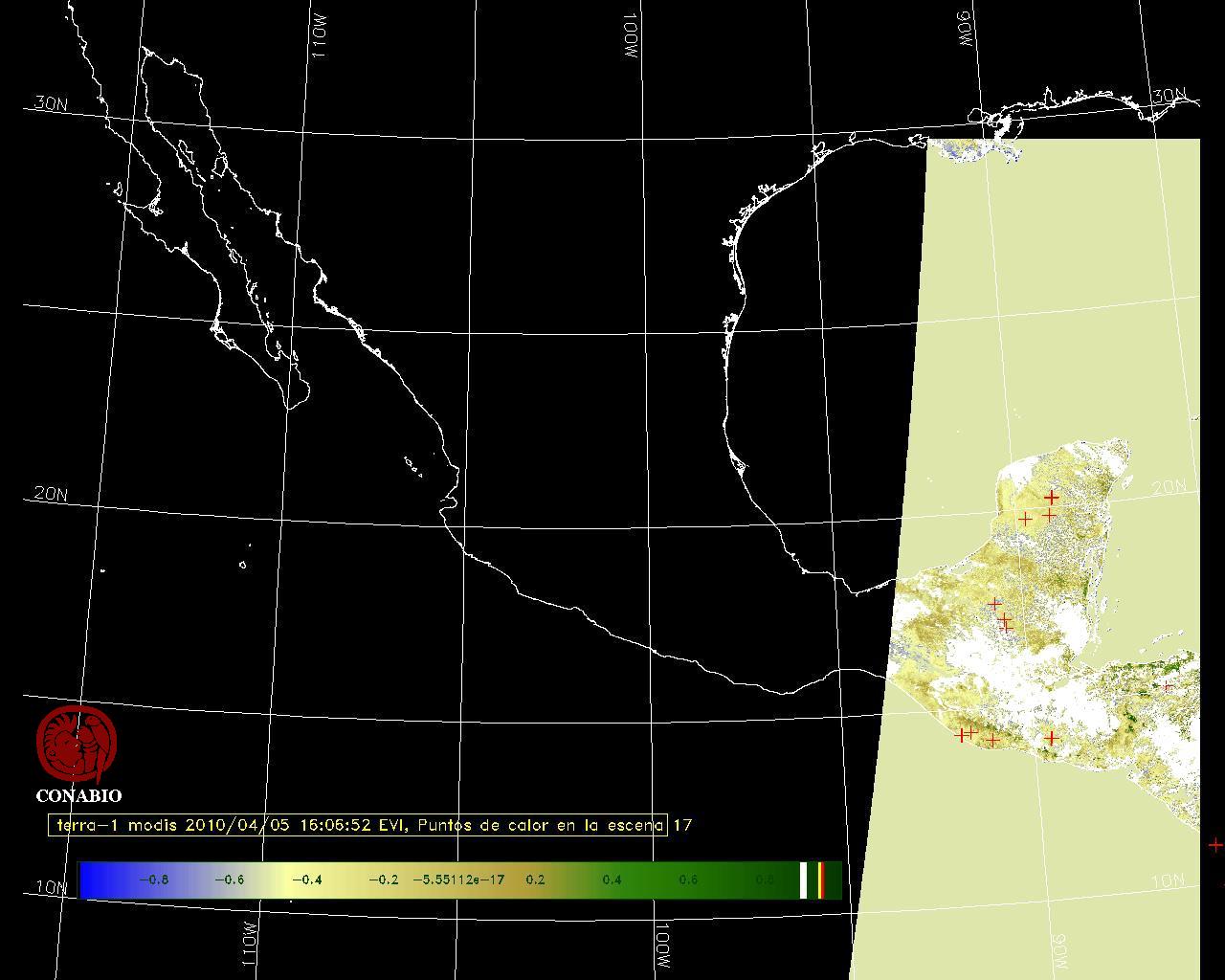 Se considera como punto de calor al elemento espacial mínimo de la imagen (pixel) que reporta una temperatura elevada. Para las imágenes diurnas la temperatura mínima considera es de 42 C y para las imágenes nocturnas es de 25 C. |