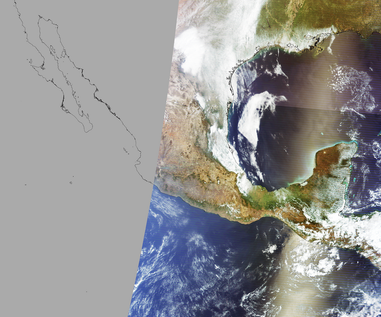 Nubosidad en el terreno:20% Nubosidad sobre México:8% Datos nulos en la escena:41% Datos nulos sobre México:44% |