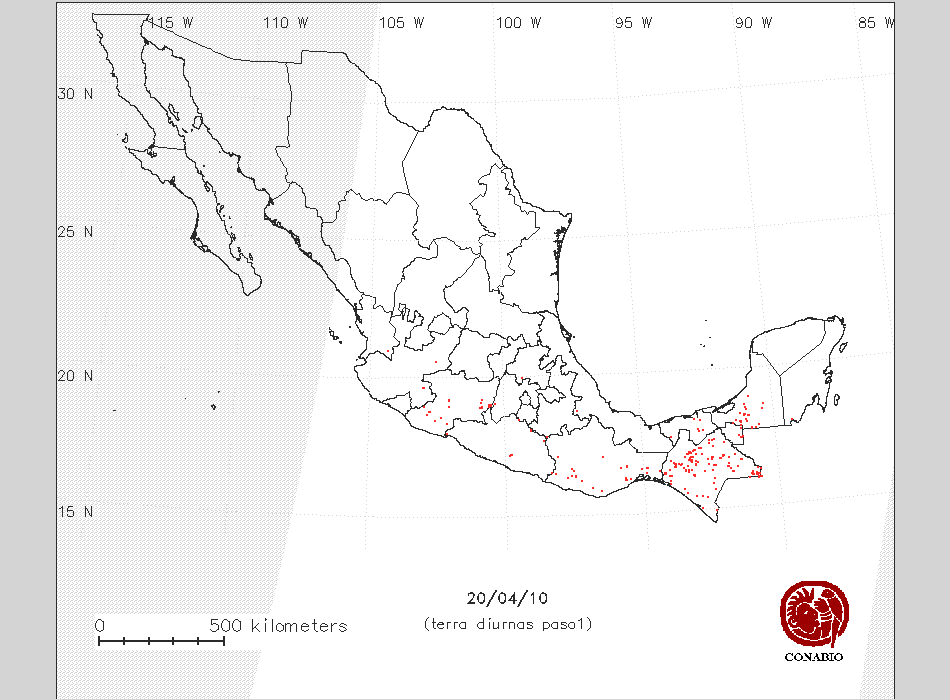 | 8 | 1 | -91 2 27 | 18 25 34 | Pastizal cultivado | Carmen,Campeche | NO AFECTA | 0 ° | Bajo | |