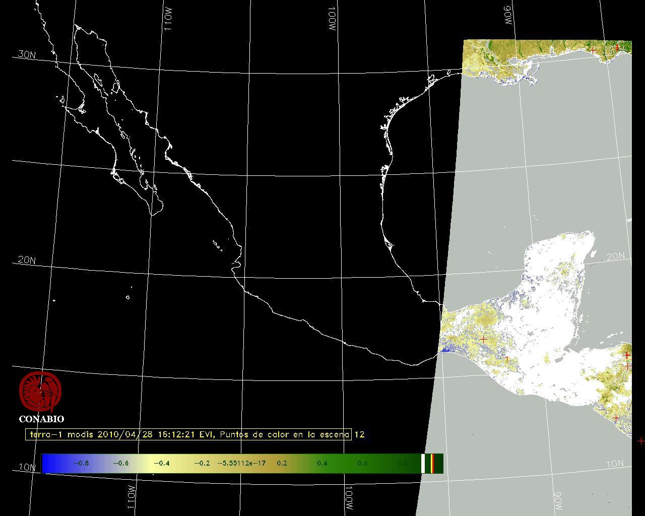 Se considera como punto de calor al elemento espacial mínimo de la imagen (pixel) que reporta una temperatura elevada. Para las imágenes diurnas la temperatura mínima considera es de 42 C y para las imágenes nocturnas es de 25 C. |