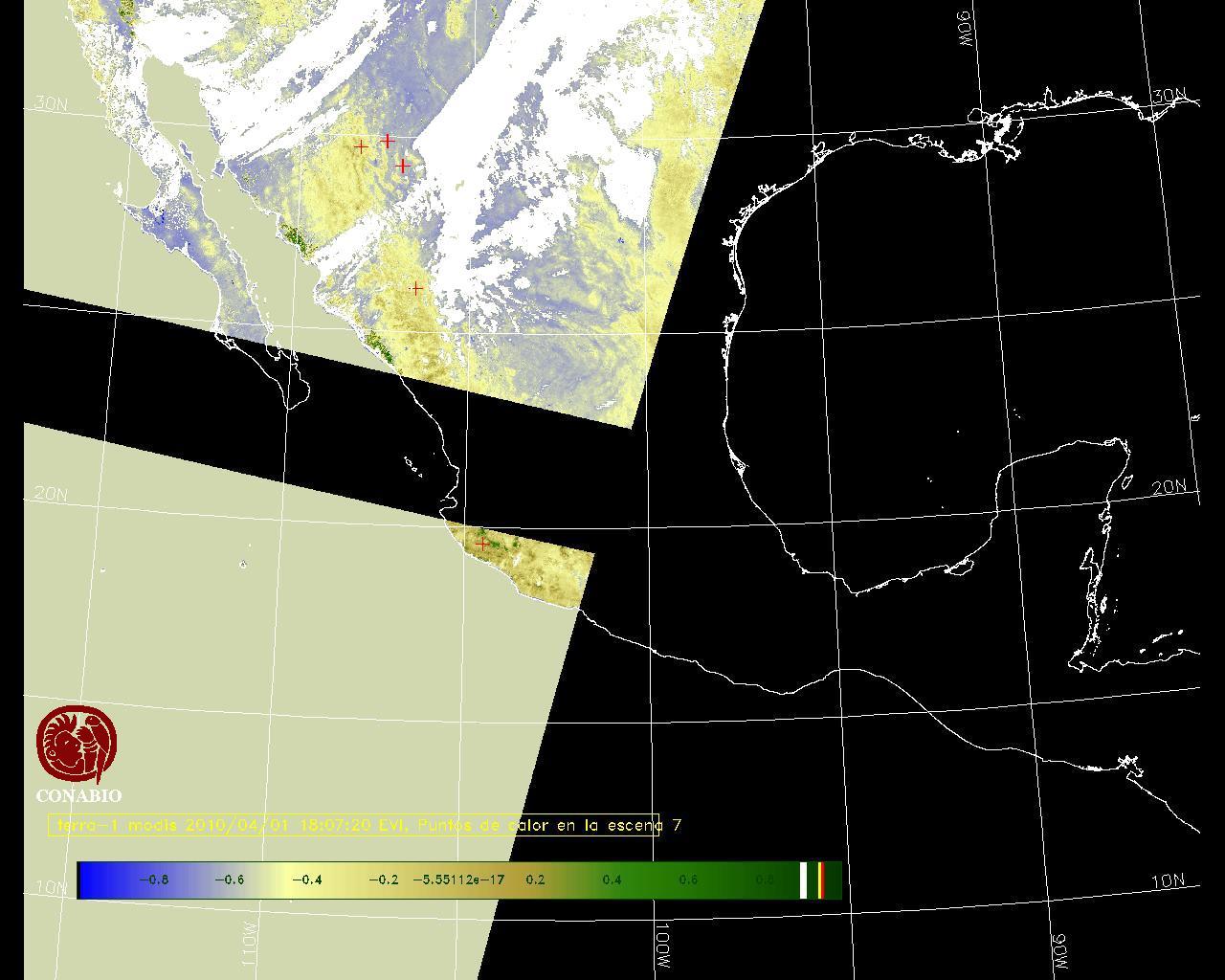 Se considera como punto de calor al elemento espacial mínimo de la imagen (pixel) que reporta una temperatura elevada. Para las imágenes diurnas la temperatura mínima considera es de 42 C y para las imágenes nocturnas es de 25 C. |