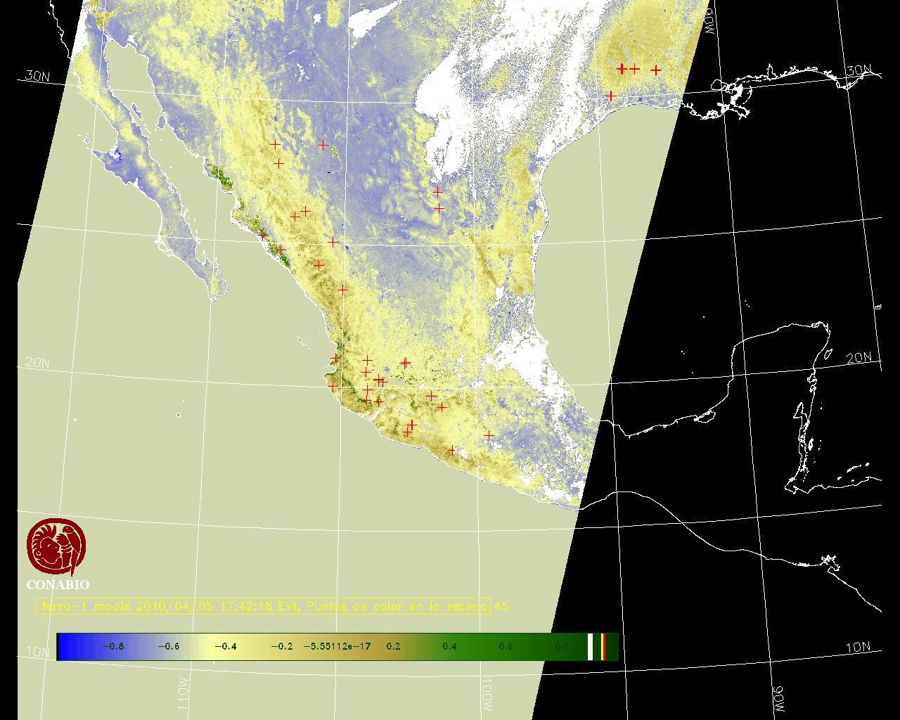 Nubosidad en el terreno:12% Nubosidad sobre México:6% Datos nulos en la escena:32% Datos nulos sobre México:15% |