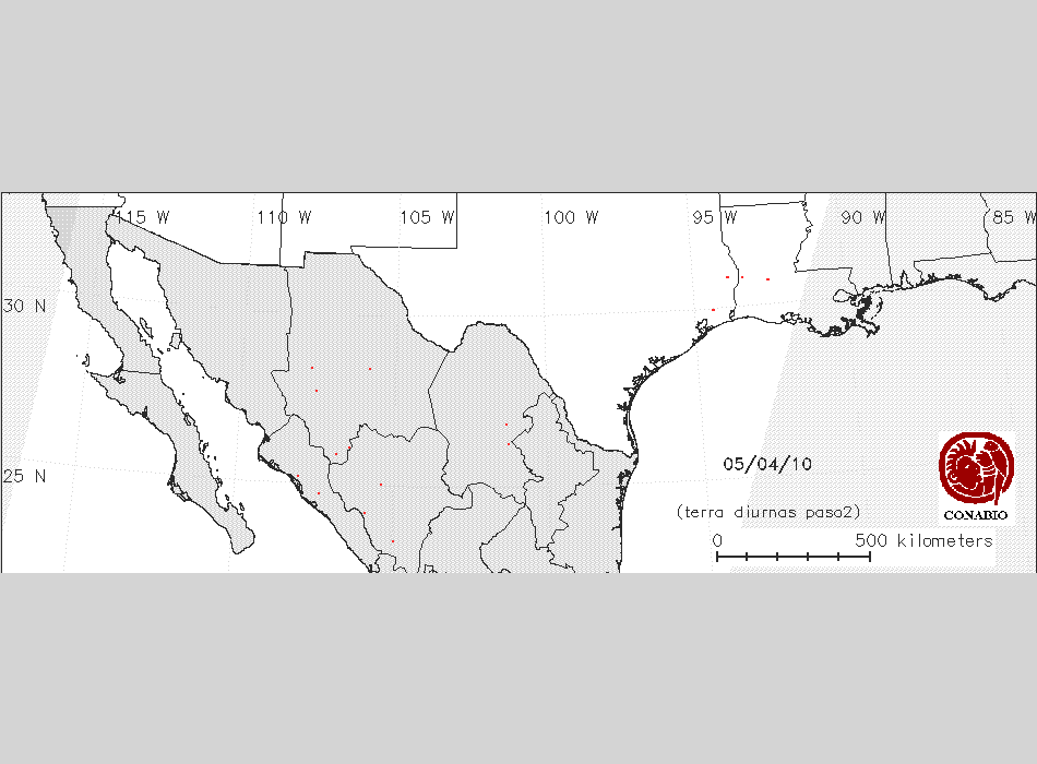 Se considera como punto de calor al elemento espacial mínimo de la imagen (pixel) que reporta una temperatura elevada. Para las imágenes diurnas la temperatura mínima considera es de 42 C y para las imágenes nocturnas es de 25 C. |